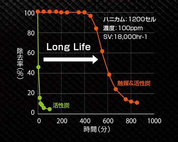 触媒と活性炭を担持することで高除去率、長寿命を実現