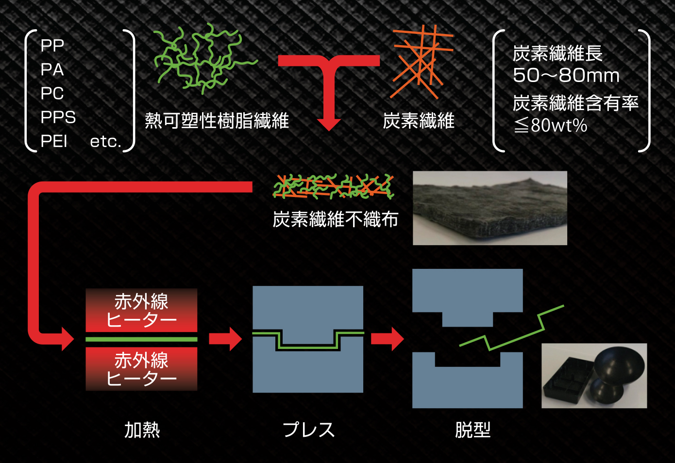 強度と成形性のバランスに優れたCFRTPプレス成形用炭素繊維不織布