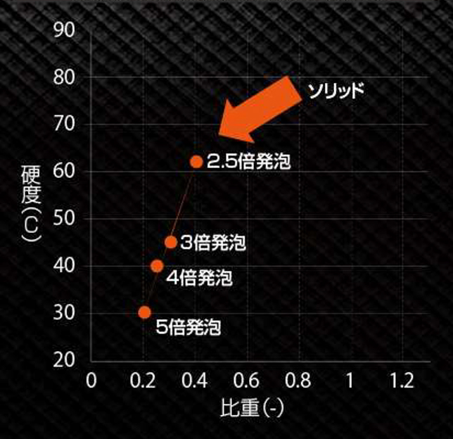 軽量化:高い発泡倍率により軽量化を実現