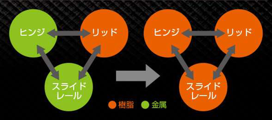 高剛性・高寸法精度・良外観を兼ね備えたコンソールヒンジ